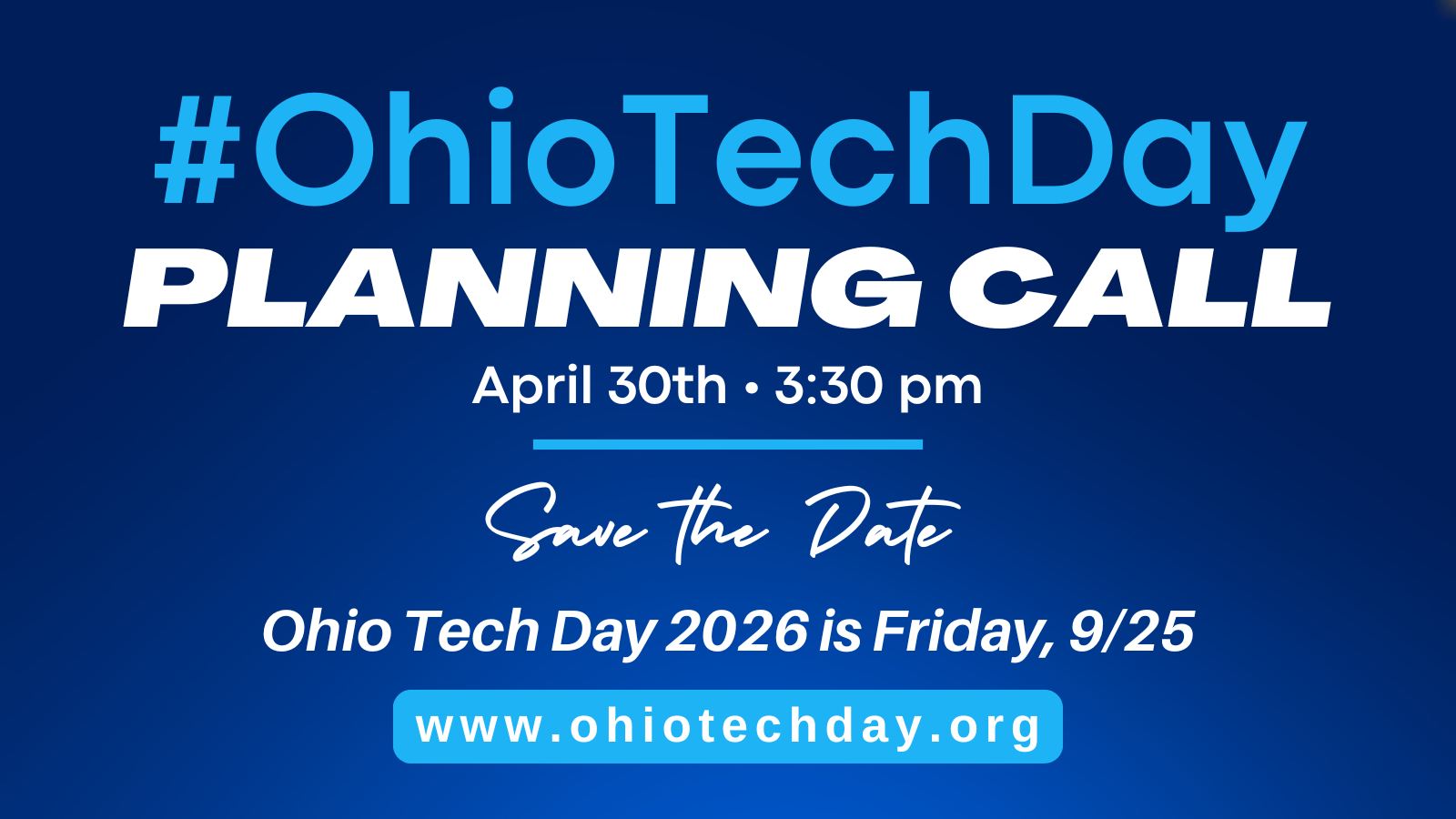 RSVP via Zoom for the Ohio Tech Day Planning session on Thursday, April 30th, from 3:30pm - 4pm.