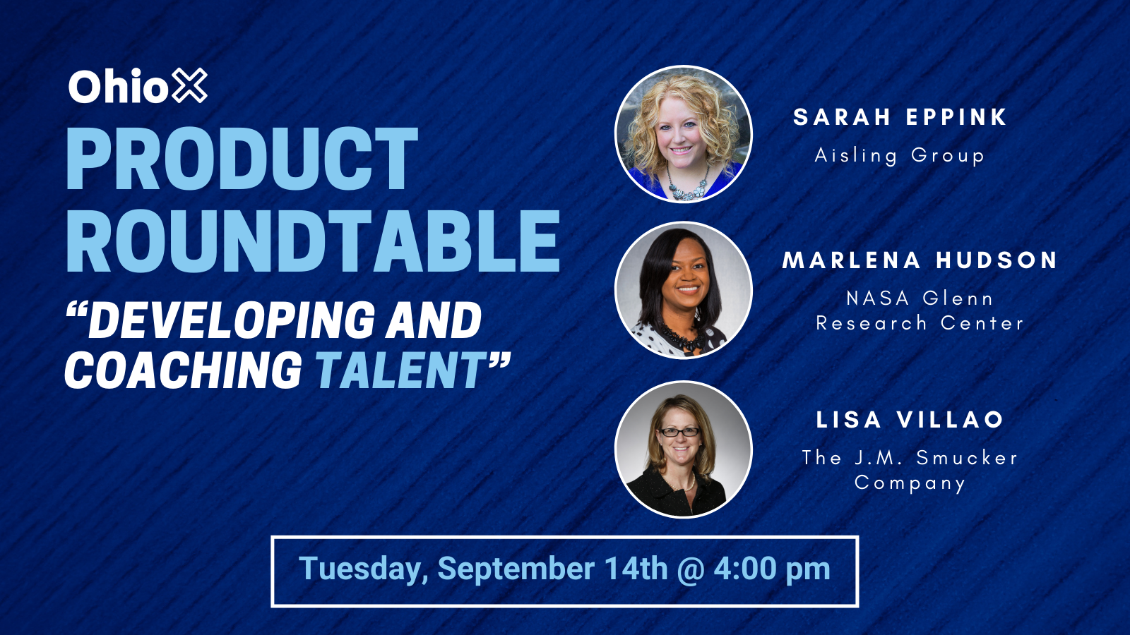 Join OhioX for our September Product Roundtable on “Developing and Coaching Talent” on Tuesday, September 14th at 4:00 pm.